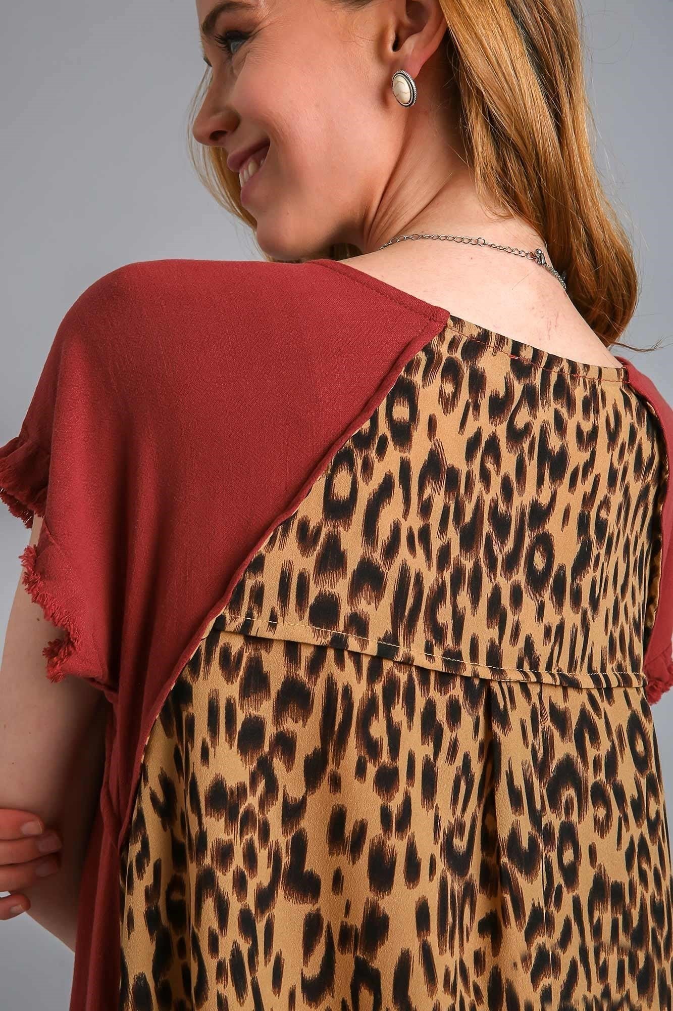 Be the first to review “Umgee Red Brown Dress with Animal Print Back” Cancel reply