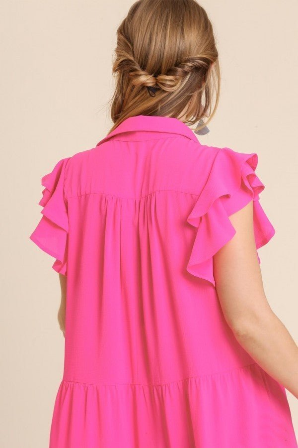 Umgee Tiered Midi Dress with Ruffled Sleeves in Hot Pink ON ORDER